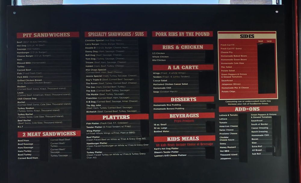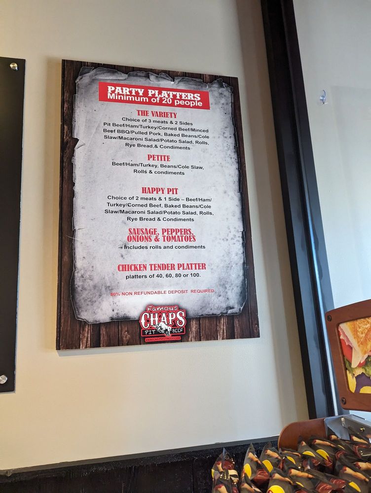 Chaps Pit Beef offers a Southern-inspired menu specializing in pit beef sandwiches and barbecue dishes. Located in Baltimore, MD, this restaurant provides a variety of meats with options for customization to create the perfect sandwich or platter. Customers have praised the real meat quality and the friendly service. The house sauce and variety of BBQ options stood out, while the brisket was noted to be unavailable. The fast service, clean interior, and flavorful dishes, such as the beef sandwich and tenders, left patrons satisfied. The French fries were criticized for being greasy, but improvements were made when reheated. Despite a tasteless gravy, the overall experience earned Chaps Pit Beef a 4 out of 5-star rating from one customer, who plans to return. The restaurant's new spot is eagerly anticipated by regulars for its efficiency, variety of condiments, and delicious sandwiches.